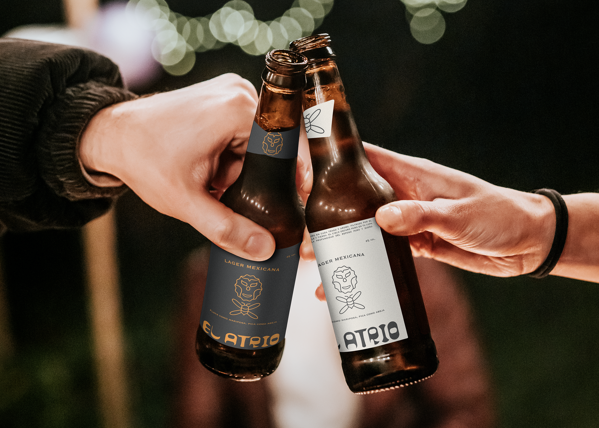 I took a Mexican lens, drawing on the idea of the atrio, a communal gathering space to shape El Atrio’s identity, where the bee’s geometric precision meets the luchador’s expressive spirit. The name is set in bespoke typography, designed to balance strength and elegance central to the concept. Guided by ‘Flota como mariposa, pica como abeja’ (a cheeky Spanish spin), I set out to capture both freedom and sting through clean lines, a restrained modernist palette, and intentional negative space, creating visual impact that feels premium yet culturally grounded. It channels Mexico’s vibrant heritage while resonating with Australian collectors and craft enthusiasts who share an independent spirit and a love of artistry and storytelling in their beer.